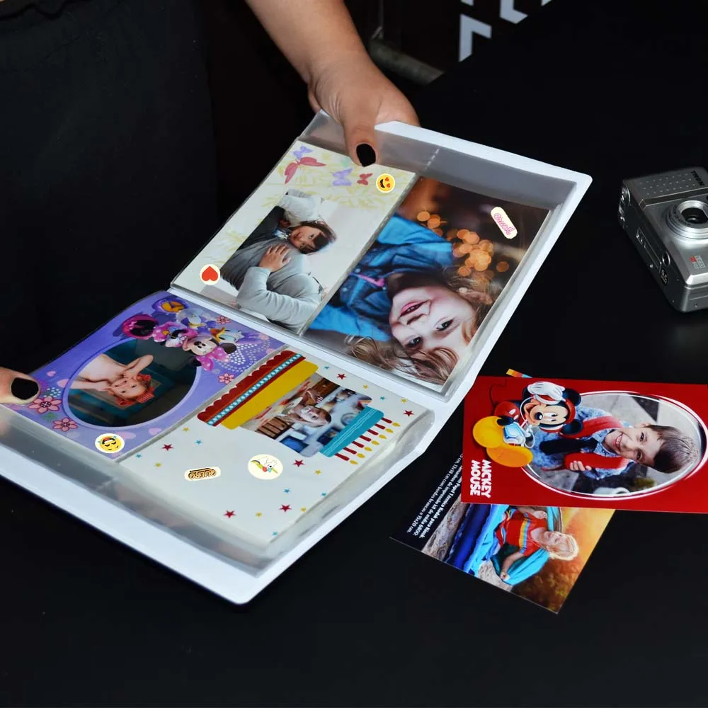 - Capacidade: 500 fotos (4 fotos por plástico, frente e verso)
