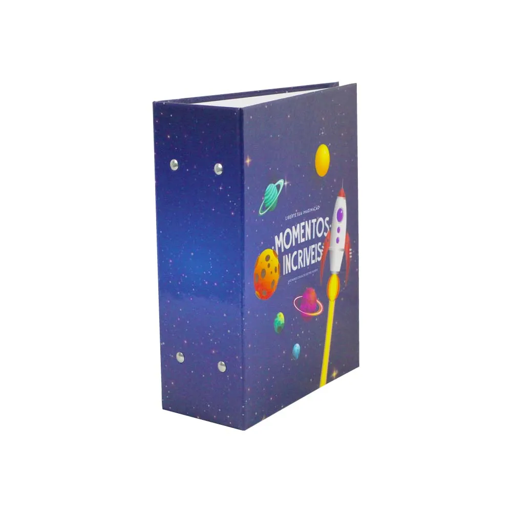 Além disso, o álbum apresenta uma capa colorida e divertida, adornada com planetas em um fundo azul vibrante. As frases inspiradoras como “Liberte sua Imaginação” e “Momentos incríveis até parecem coisa de outro mundo” tornam este item ainda mais especial. Assim sendo, não é apenas um álbum, mas sim uma forma de estimular a criatividade e a imaginação de quem o utiliza.