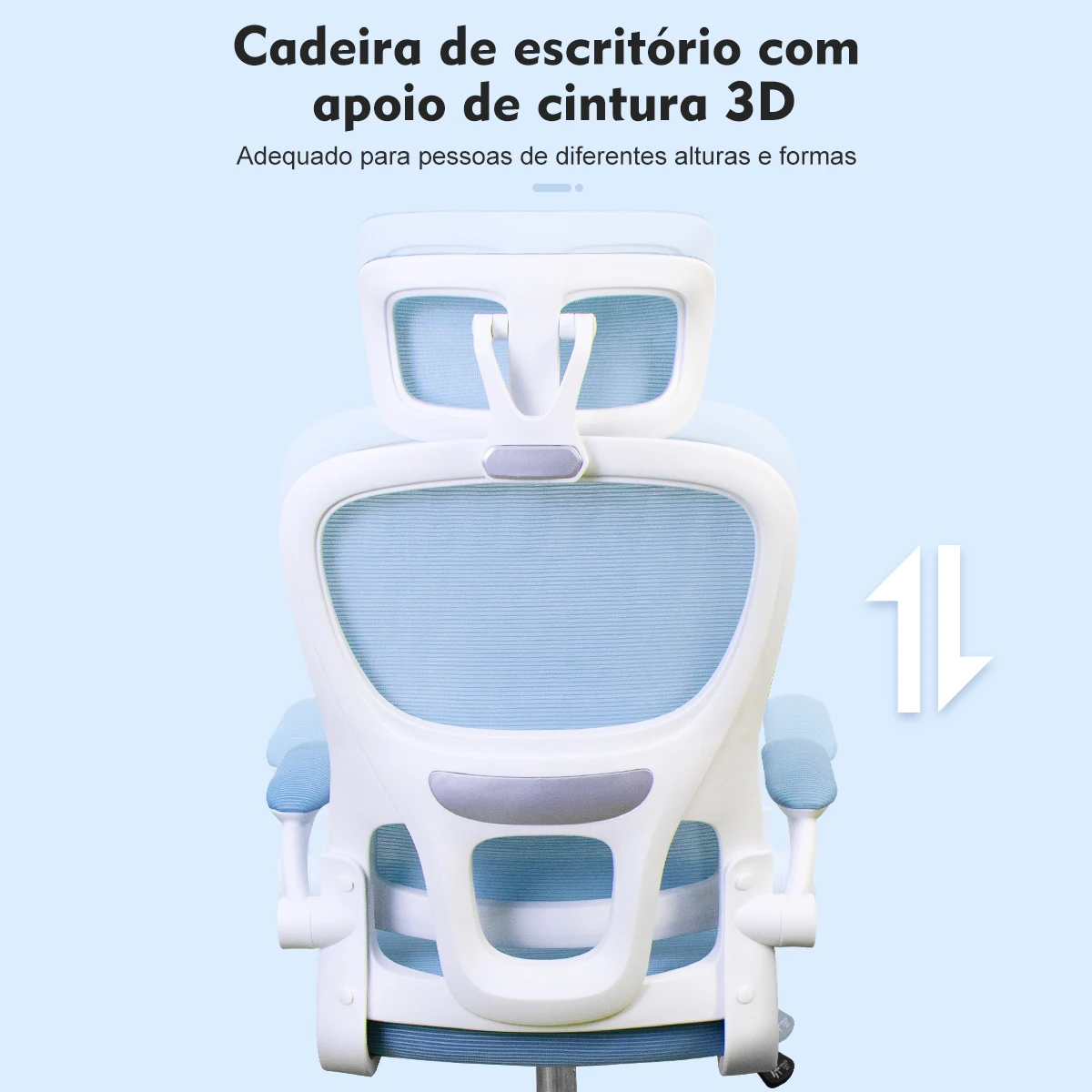 Igualmente, o assento e o encosto são feitos de malha respirável, garantindo conforto durante todo o dia. O tecido premium conta com uma dupla camada anti-desgaste e espuma de alta densidade (5cm), proporcionando uma base elástica que se adapta ao seu corpo.