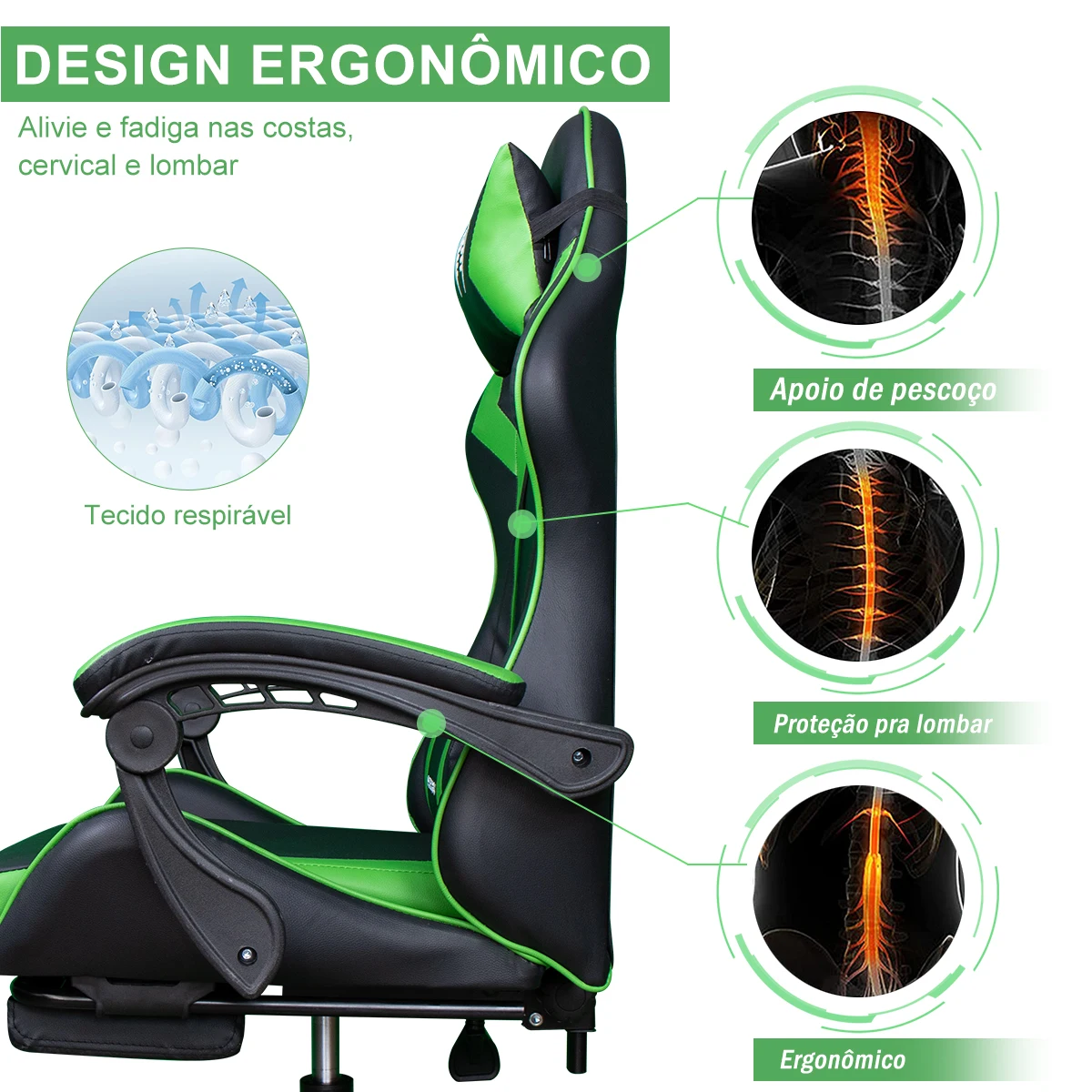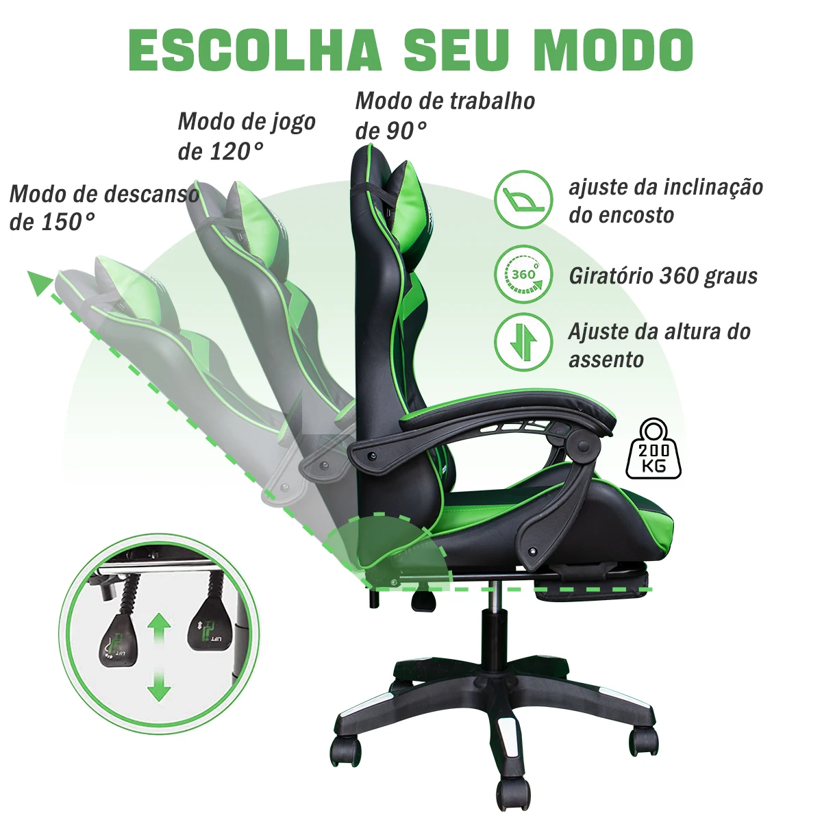 Em contrapartida, o descanso de pés retrátil, com extensão de 54cm, garante um relaxamento extra após longas horas de uso. Portanto, a estrutura em aço reforçado oferece durabilidade e segurança. Os braços ergonômicos, revestidos em borracha premium, também contribuem para um conforto adicional.