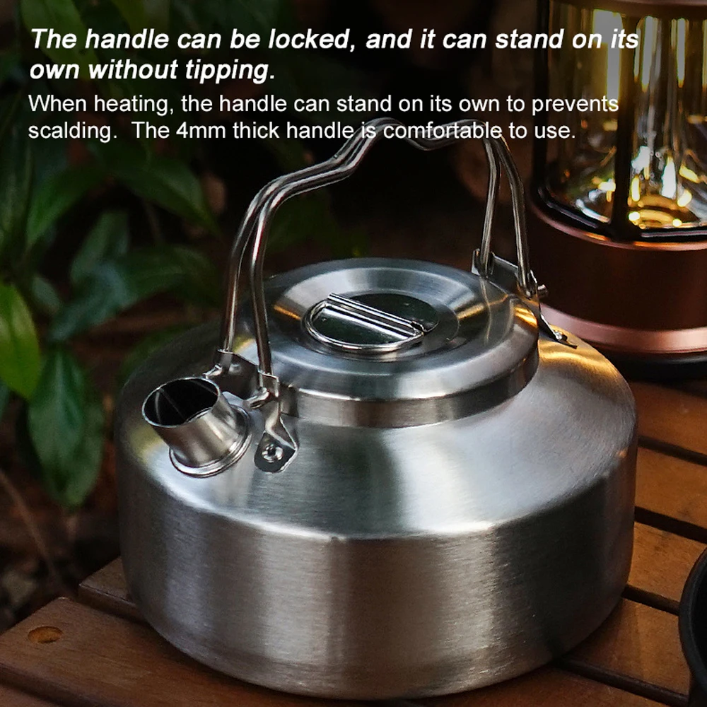 Leve sua experiência de acampamento a um novo nível com a chaleira de aço inoxidável portátil. Ideal para piqueniques, acampamentos, caminhadas, trekking e muito mais, esta chaleira é a companheira perfeita para ferventar água e preparar suas refeições ao ar livre. Portanto, não importa o local, você terá uma chaleira que se ajusta perfeitamente às suas necessidades.