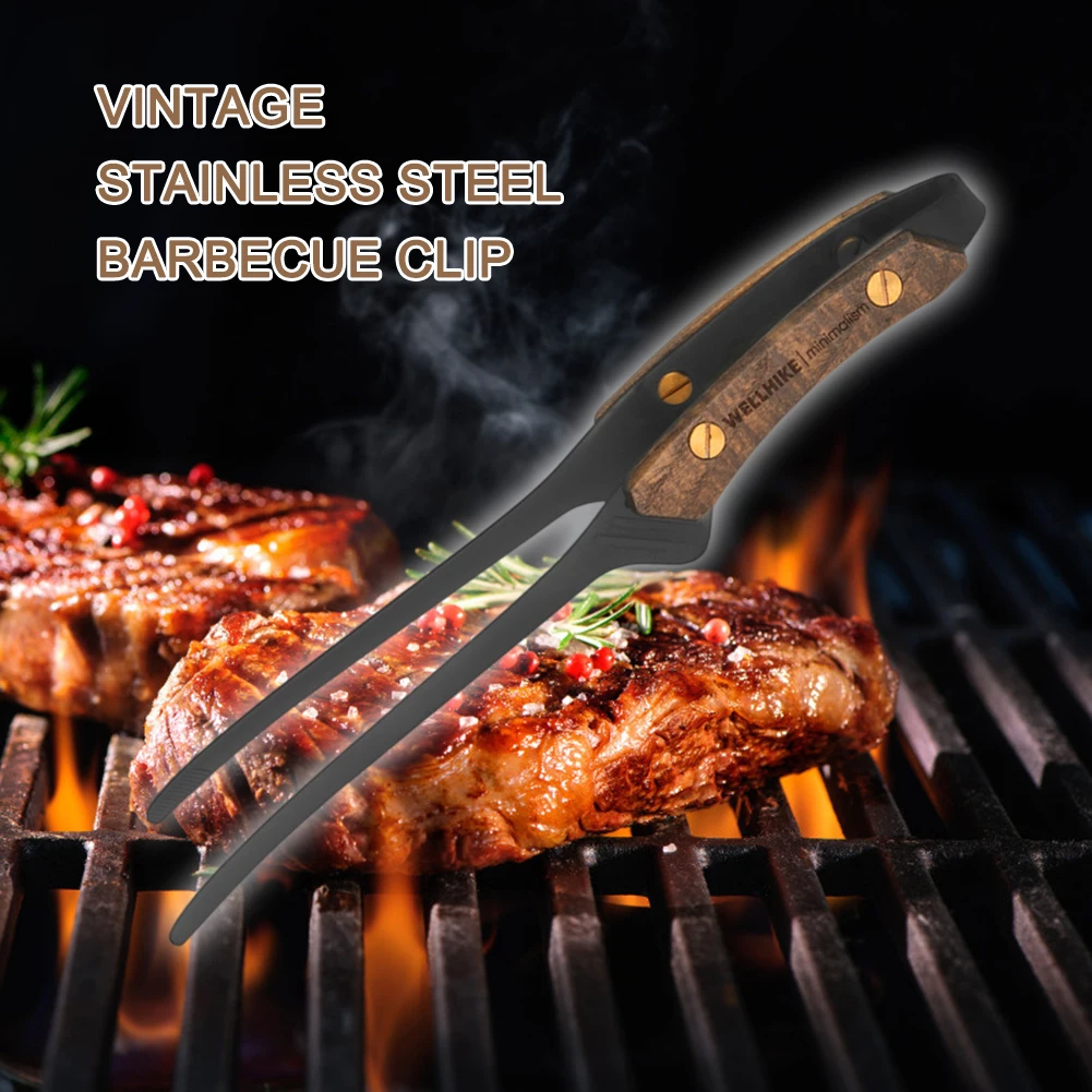 Clipe de Carne Vintage para Churrasco em Aço Inoxidável