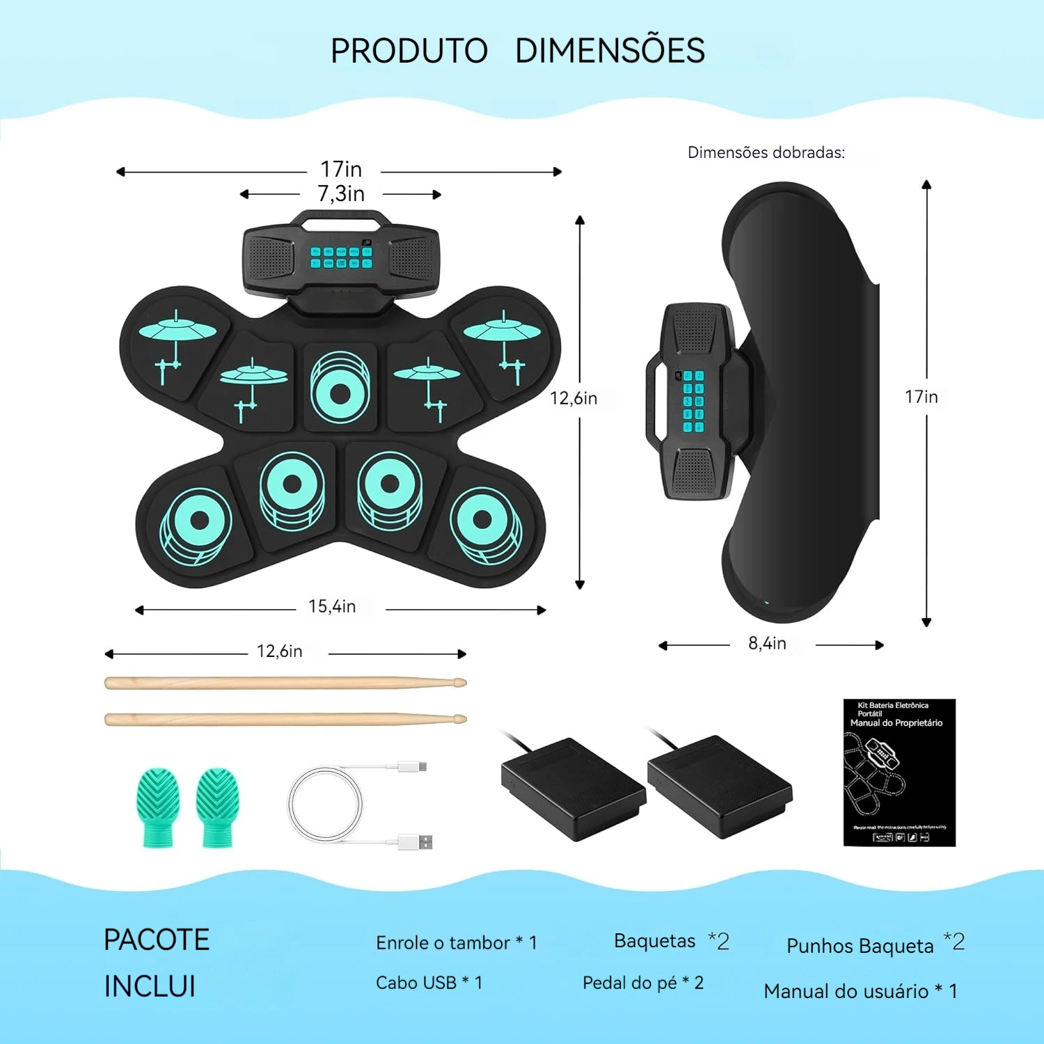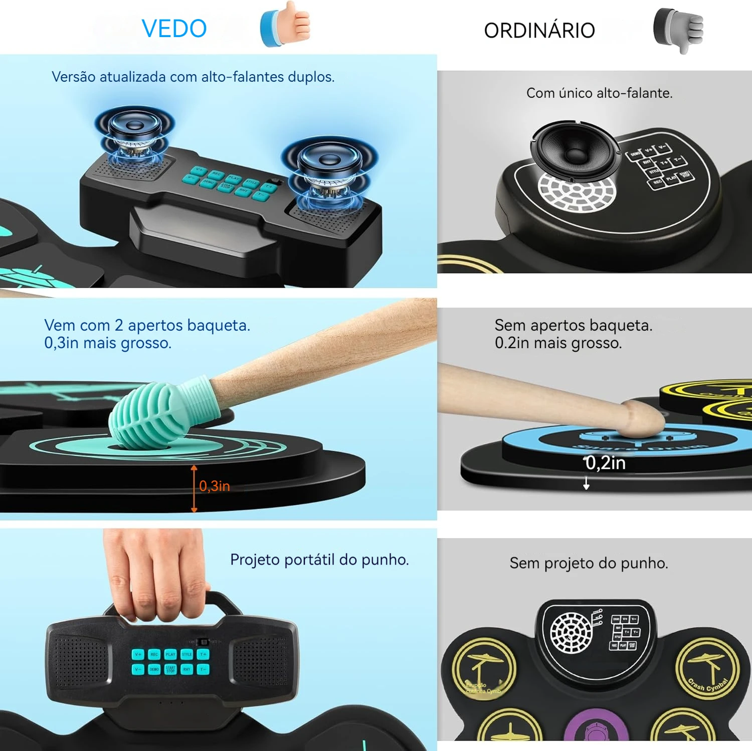 O Conjunto de Tapete de Bateria Eletrônica Portátil é a escolha perfeita para iniciantes e amantes da música que desejam praticar bateria de forma prática e divertida. Além disso, com seu design inovador e funcional, este conjunto é ideal para quem procura uma experiência de prática musical completa e de alta qualidade. Portanto, descubra as incríveis características e especificações que tornam este produto único.