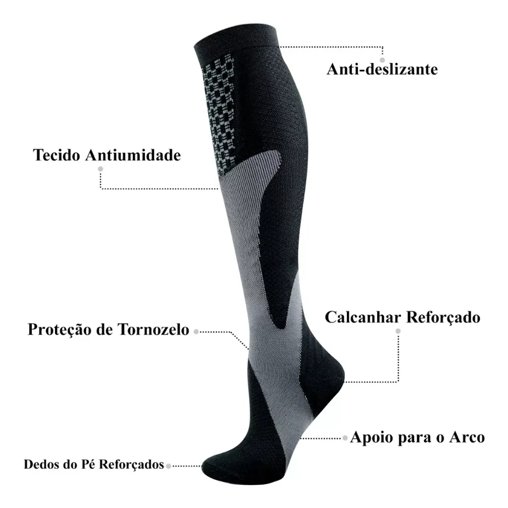 Consequentemente, essas meias são especialmente úteis para pessoas com inchaço, diabetes, ou que necessitam de suporte para a circulação sanguínea. Além disso, são perfeitas para esportes como: