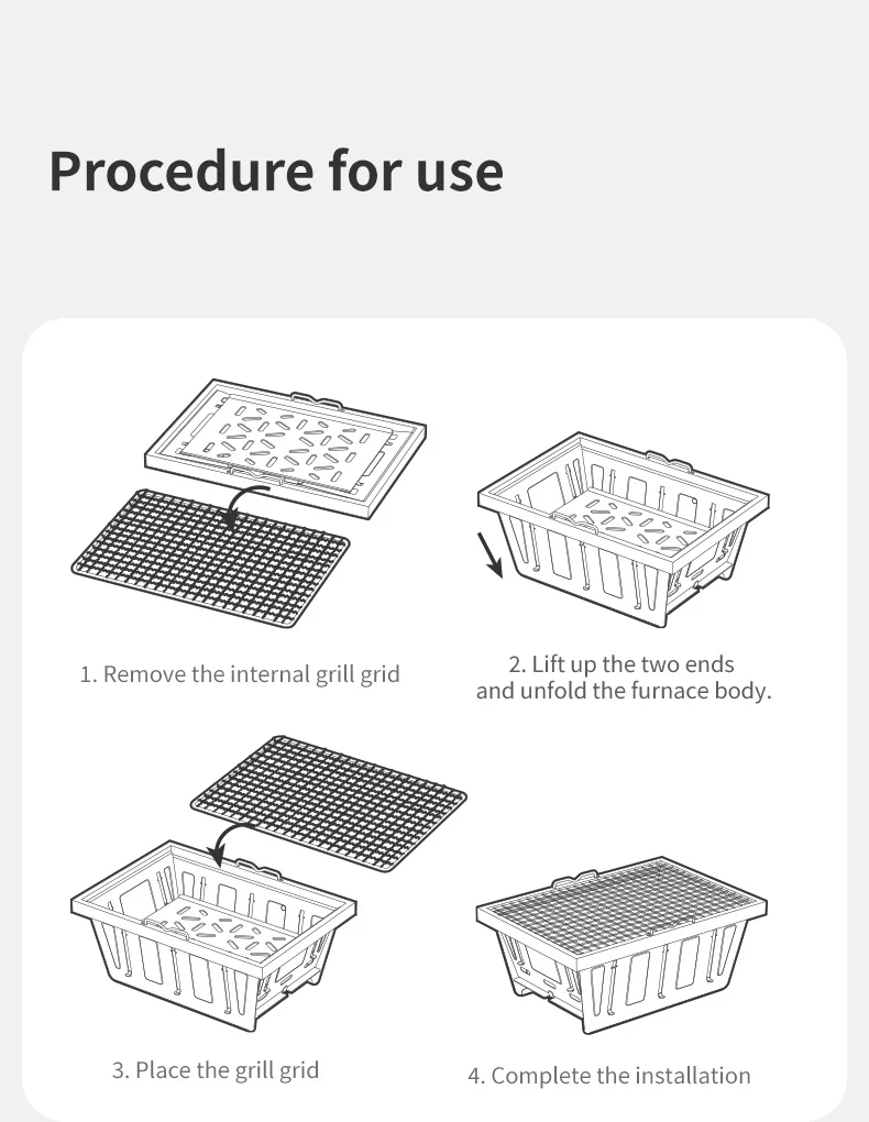 Essa churrasqueira se destaca pela sua portabilidade e facilidade de armazenamento. Dessa forma, você pode levá-la facilmente em suas aventuras, sem ocupar muito espaço. O design dobrável permite que ela seja compactada e armazenada com facilidade, o que a torna uma opção extremamente conveniente.