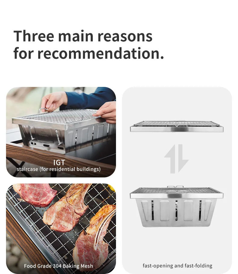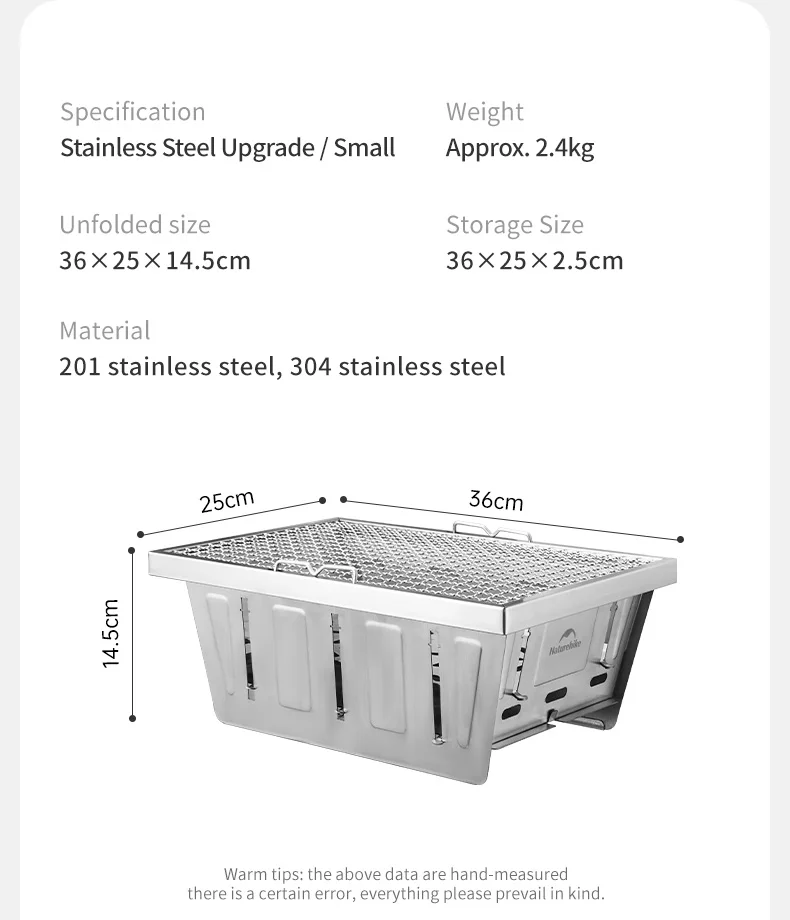 Churrasqueira Dobrável Naturehike de Aço Inoxidável