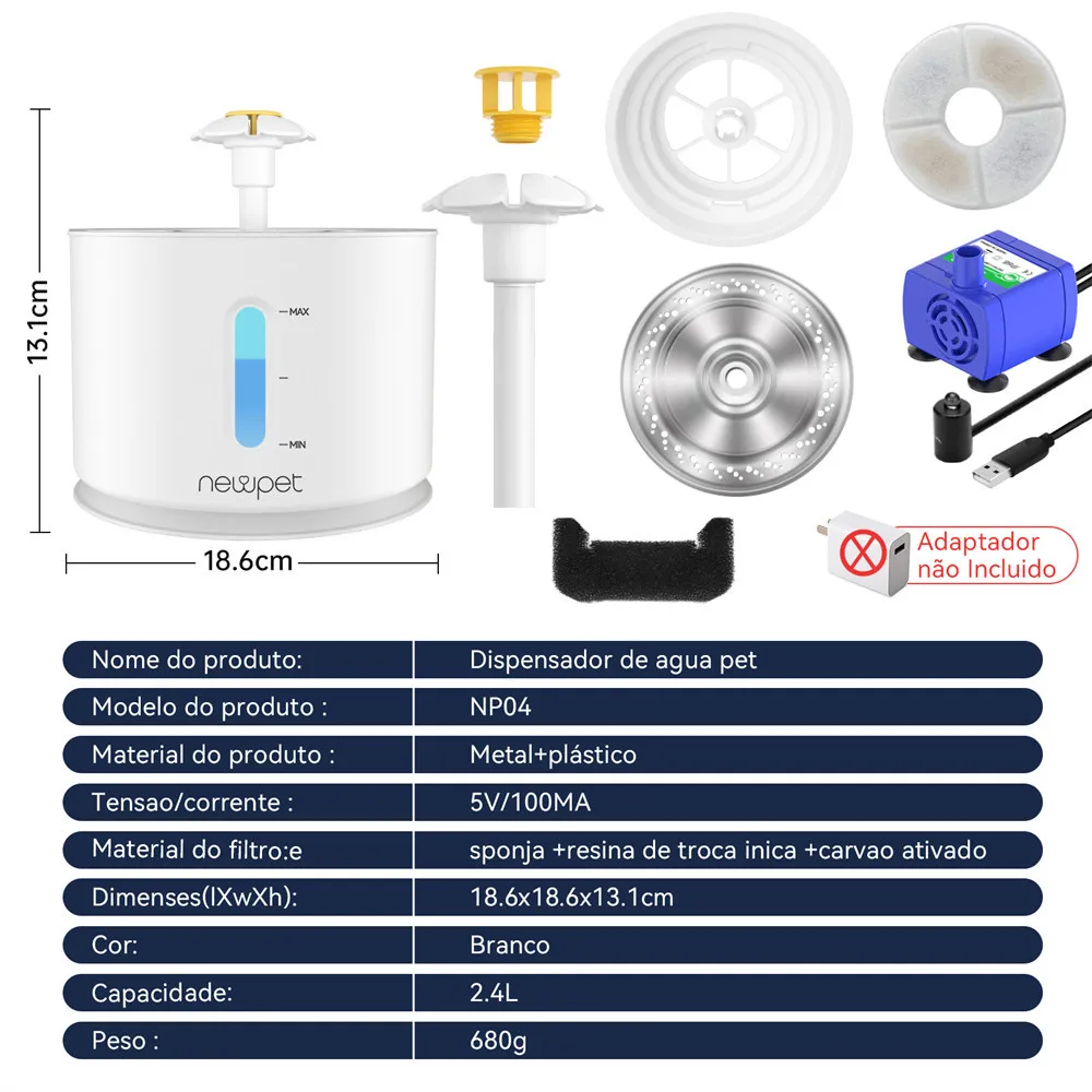 O Bebedouro Automático Newpet para Gatos e animais de estimação é a solução perfeita para manter seu pet hidratado de forma prática e eficiente. Com uma capacidade de 2,4 litros, este bebedouro é ideal para gatos, cães pequenos e médios, além de outros animais de estimação como pássaros.