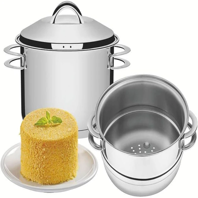Com a cuscuzeira em aço inox, você garante um cozimento perfeito de alimentos como o cuscuz, mantendo todo o sabor e a qualidade. Assim sendo, o fundo triplo não só melhora a eficiência do aquecimento, mas também evita que os alimentos grudem, garantindo um resultado delicioso. Para conseguir o melhor resultado, recomenda-se utilizar fogo médio baixo durante o cozimento.