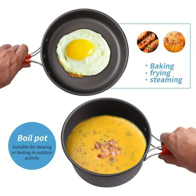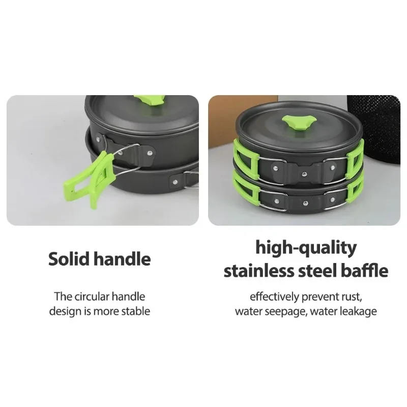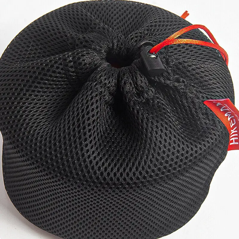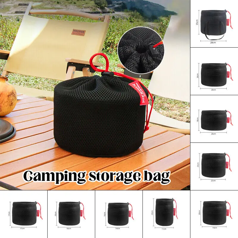 O saco de armazenamento é projetado para acomodar perfeitamente diversos tamanhos de panelas, como xícaras de acampamento de 500ml e chaleiras de 900ml. Assim sendo, é perfeito para armazenar não apenas panelas, mas também talheres e outros utensílios de camping.