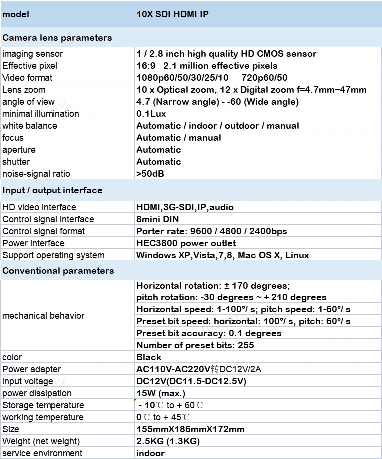 • Conexões Versáteis: A câmera oferece múltiplas opções de conexão, incluindo HDMI e SDI, facilitando sua integração em diferentes sistemas de videoconferência.