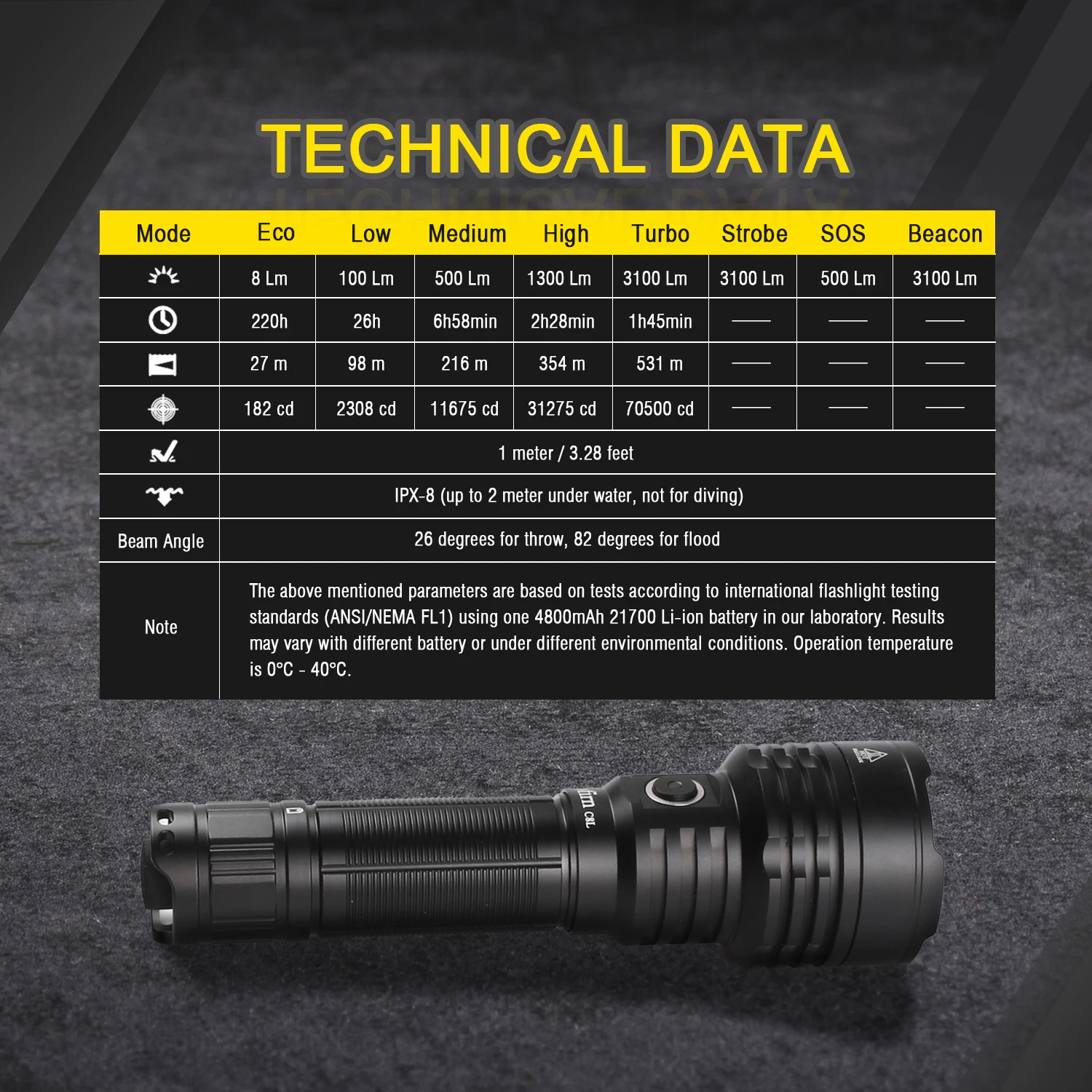 Consequentemente, a Sofirn C8L se destaca por sua tecnologia avançada de regulação de temperatura (ATR), que ajusta automaticamente o nível de brilho quando a temperatura do driver atinge 50 ℃ (122 ° F), evitando superaquecimento e garantindo segurança durante o uso. Além disso, a lanterna é equipada com uma lente de vidro mineral temperado, que oferece uma ótima transmissão de luz e resistência a riscos.