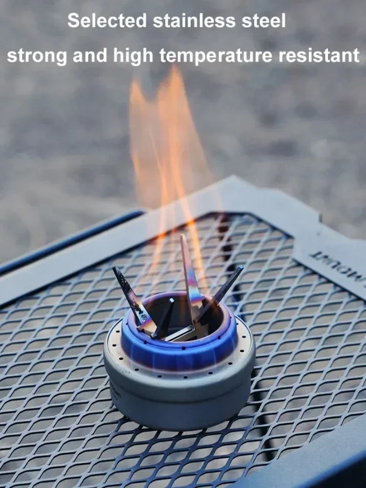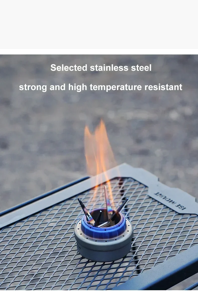 Consequentemente, sua estrutura compacta garante uma forte estabilidade em superfícies irregulares, proporcionando confiança ao cozinhar. Contudo, é importante observar que o suporte não inclui um dispositivo de ignição. Portanto, é recomendado ter um método alternativo para acender o fogo.